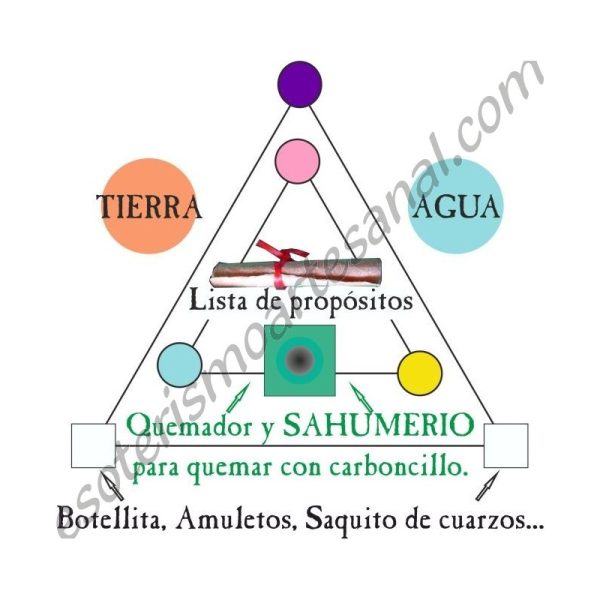 SAHUMERIO; para quemar con CARBONCILLOS (de regalo), para hacer la LIMPIEZA ESOTÉRICA de los elementos que usemos en el ritual y representará el AIRE.