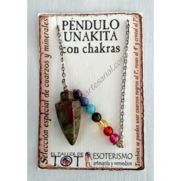 PÉNDULO mineral UNAKITA con CHAKRAS- bala – 01