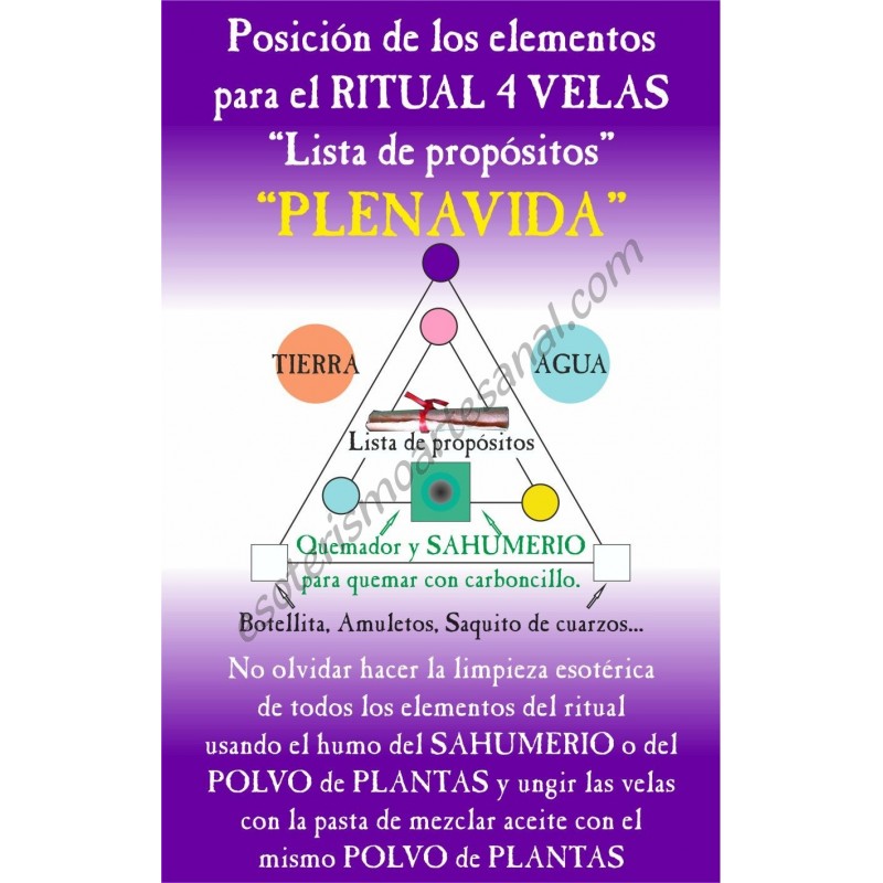 Ritual de 4 velas PLENAVIDA – Lista de propósitos